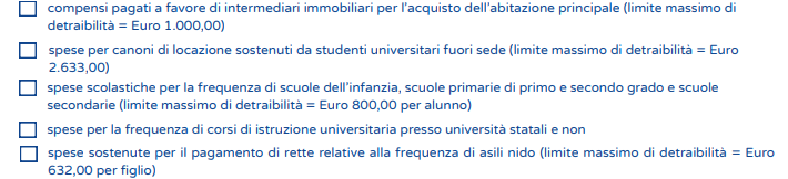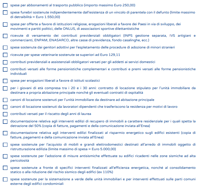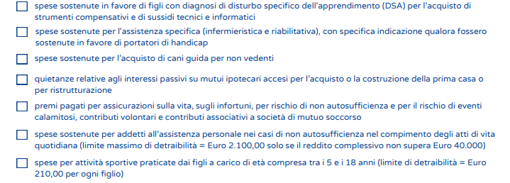 (l’elenco sotto riportato rappresenta solo le casistiche più frequenti e pertanto non è da ritenersi esaustivo. In caso di dubbi o di